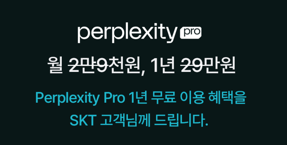 SK텔레콤에서 고객들을 대상으로 무려 29만원을 지원해주고 있습니다. 출시한지 2년도 안되어서 구글의 대항마로 떠오를 정도로 세계적인 주목을 받고있는 퍼플렉시티(Perplexity) 사용권을 1년씩이나 무료로 제공합니다. 아래에서 신청하셔야지만 29만원짜리를 무료로 사용할 수 있으니, 잘 보시고 신청해주셔서 혜택 받아가시길 바랍니다. 10월 31일까지 선착순으로 진행되니, 얼른 신청하시길 바랍니다.